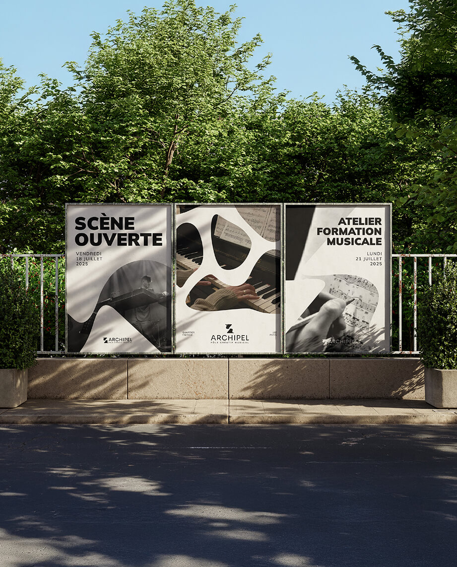 L’Archipel Musique dispose désormais d’un univers graphique cohérent et flexible, lui permettant de communiquer efficacement sur son projet ambitieux et de créer une reconnaissance immédiate dans l’écosystème musical parisien.
